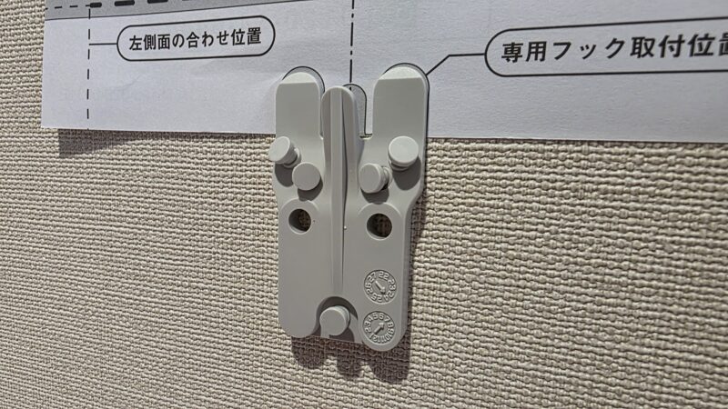 専用フックを2か所に取り付けたらあとは本体を軽く壁に押し付けながら下にスライドするだけ。