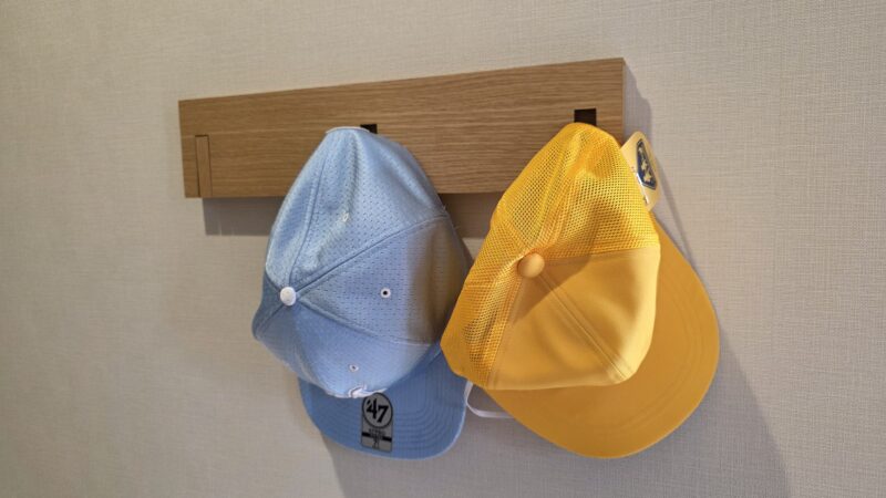 • 選んだ理由:無印のミニマルなデザインが家の雰囲気に合うこと、壁付けで床スペースを取らないこと、3連で手さげかばん+帽子+上着が掛けられる点。