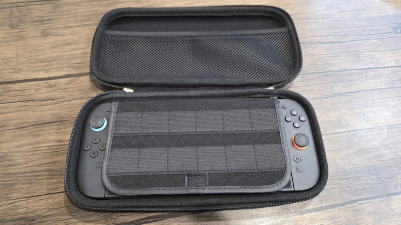 また、内部の仕切りやバンドがしっかりしているため、Switch 2本体がケース内で動くことがなく、移動中の振動や衝撃からしっかり守られている安心感があります。